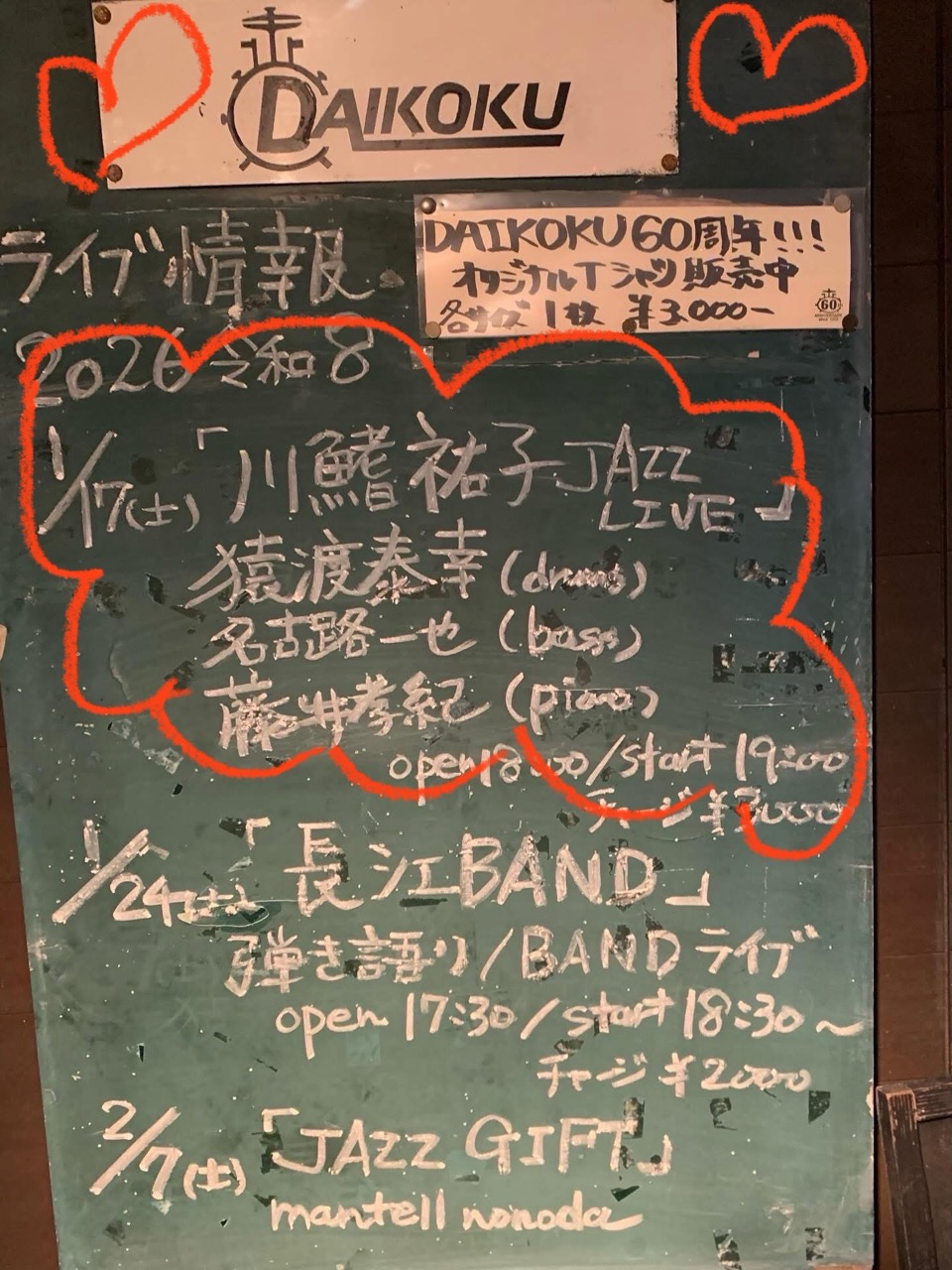 1月のライブ情報更新しました。2月以降の情報も載せております。