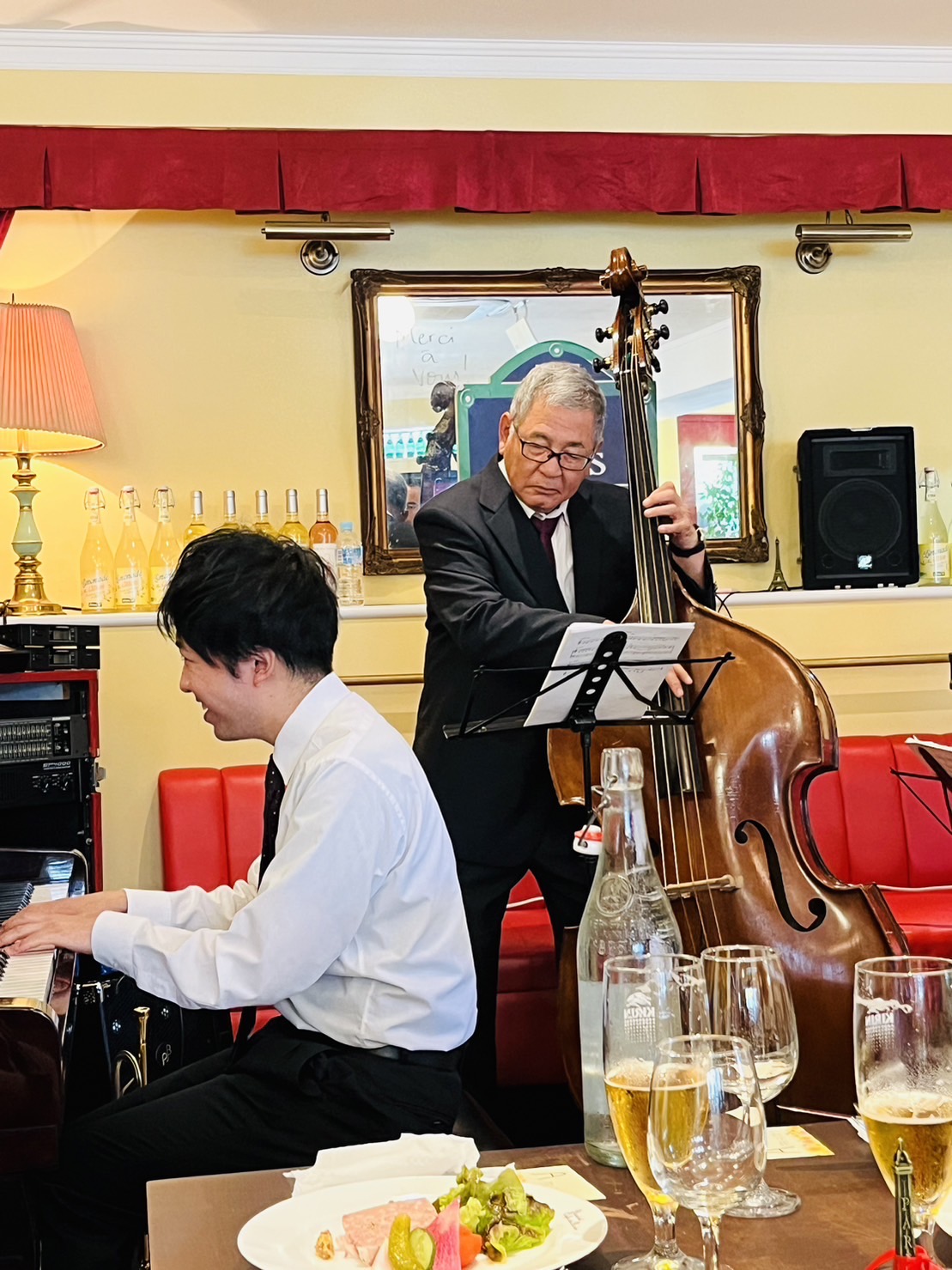 さすが関西人!美味しくて、テンションUP。おしゃれなレストランで、老舗ライブハウスで、エレキギターとのコラボ。