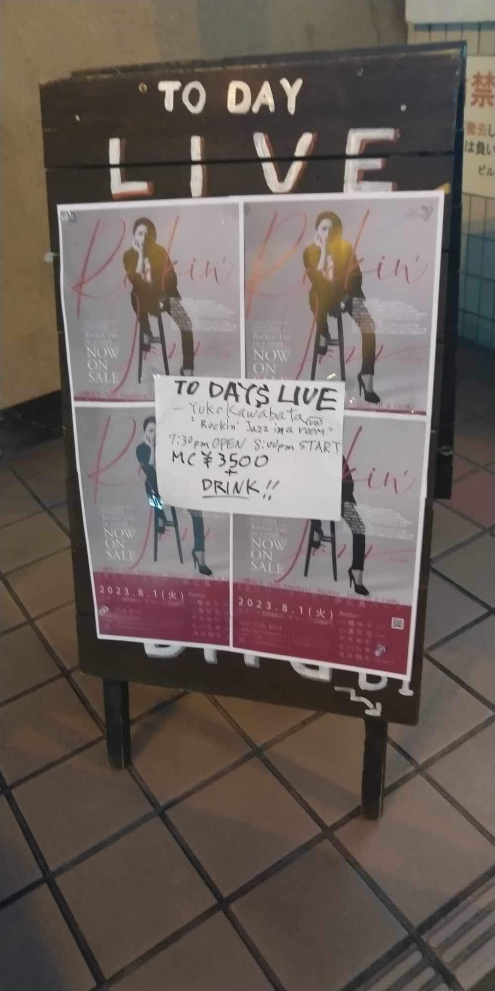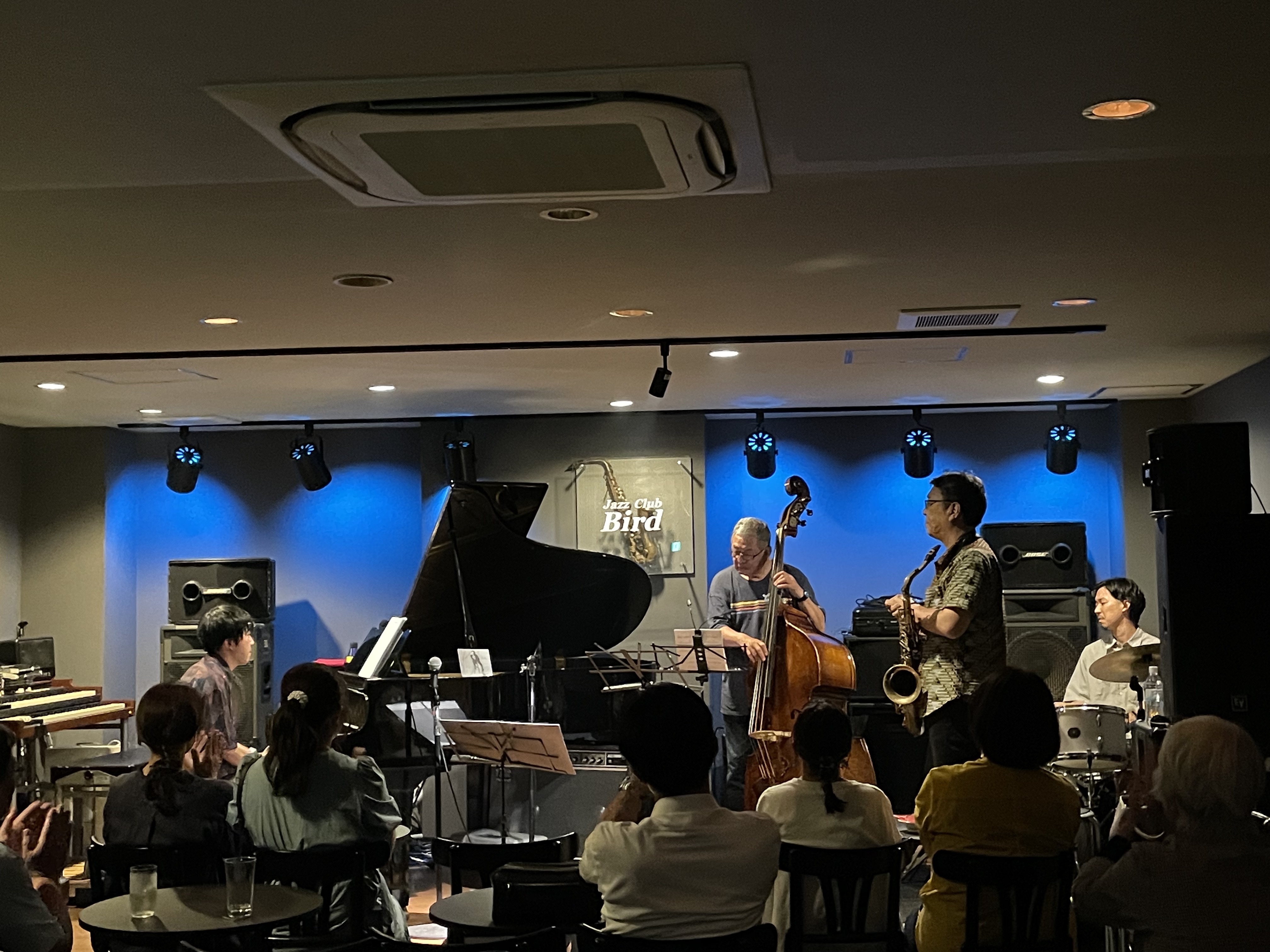 広島Jazz Bird。入り口を入ると、正面に段ステージ。かっこいいー!Jazz BirdのロゴもSo cool!